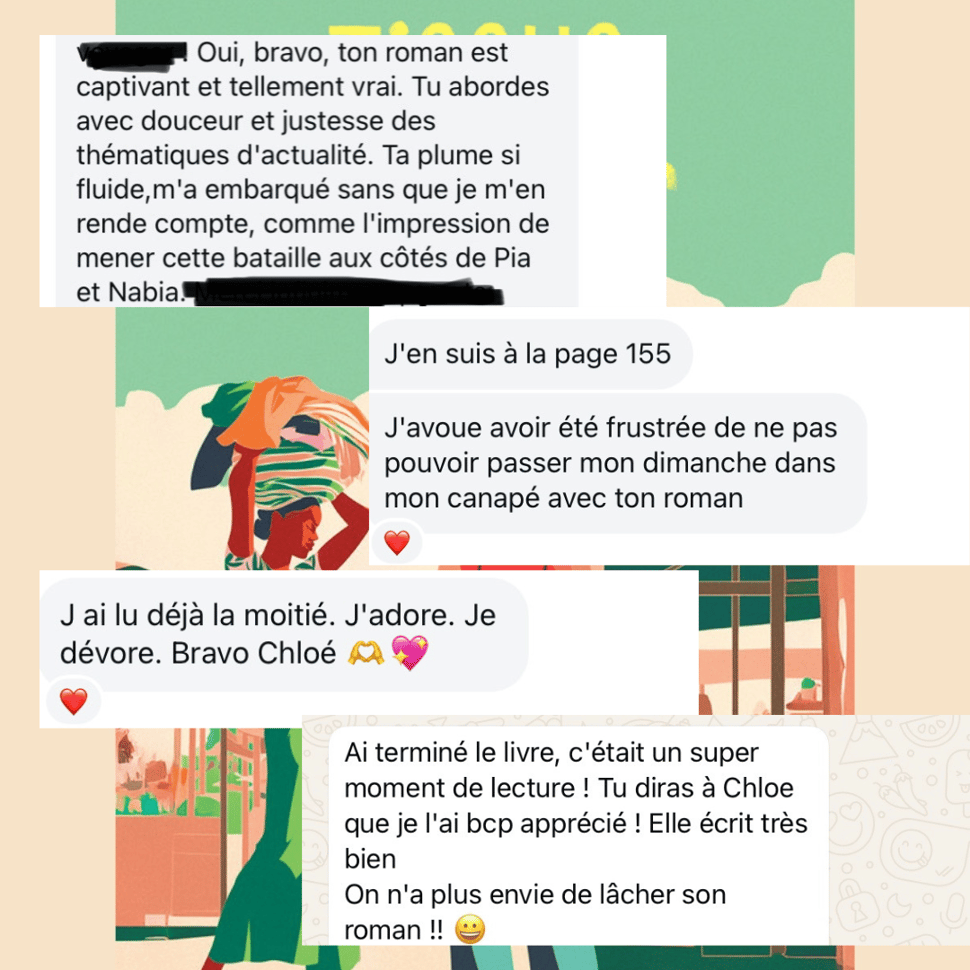 Merci infiniment de m’écrire chaque jour pour me partager vos émotions suite à la lecture de “Tissus d’espoir”. C’est un sentiment étrange, mêlant fierté et angoisse, de voir ce livre entre vos mains et de découvrir, fébrile, vos avis.